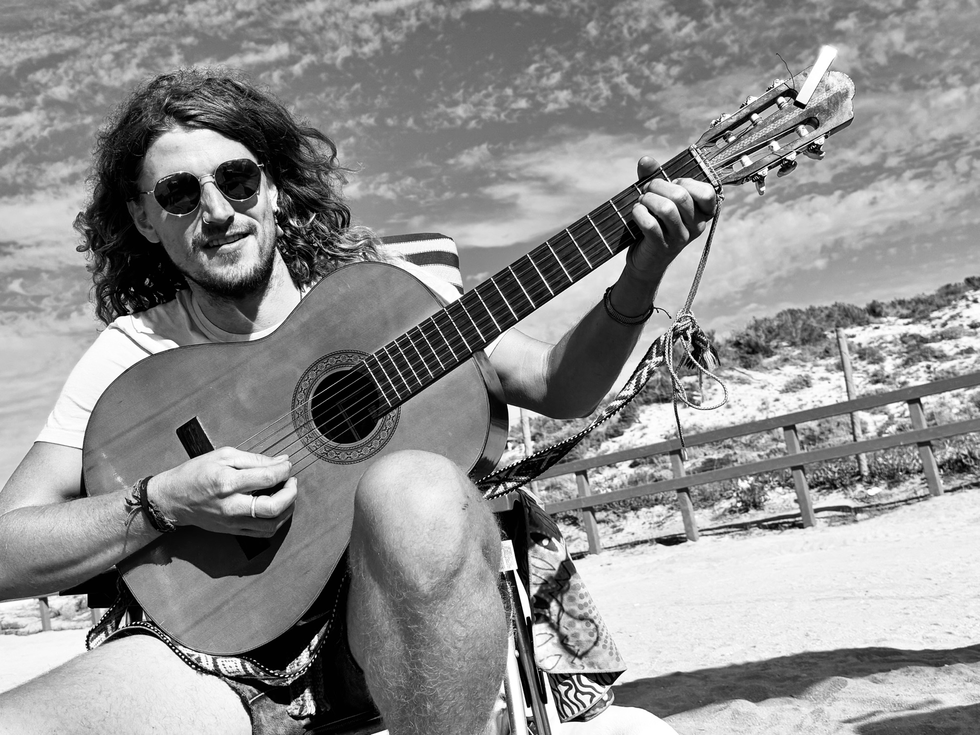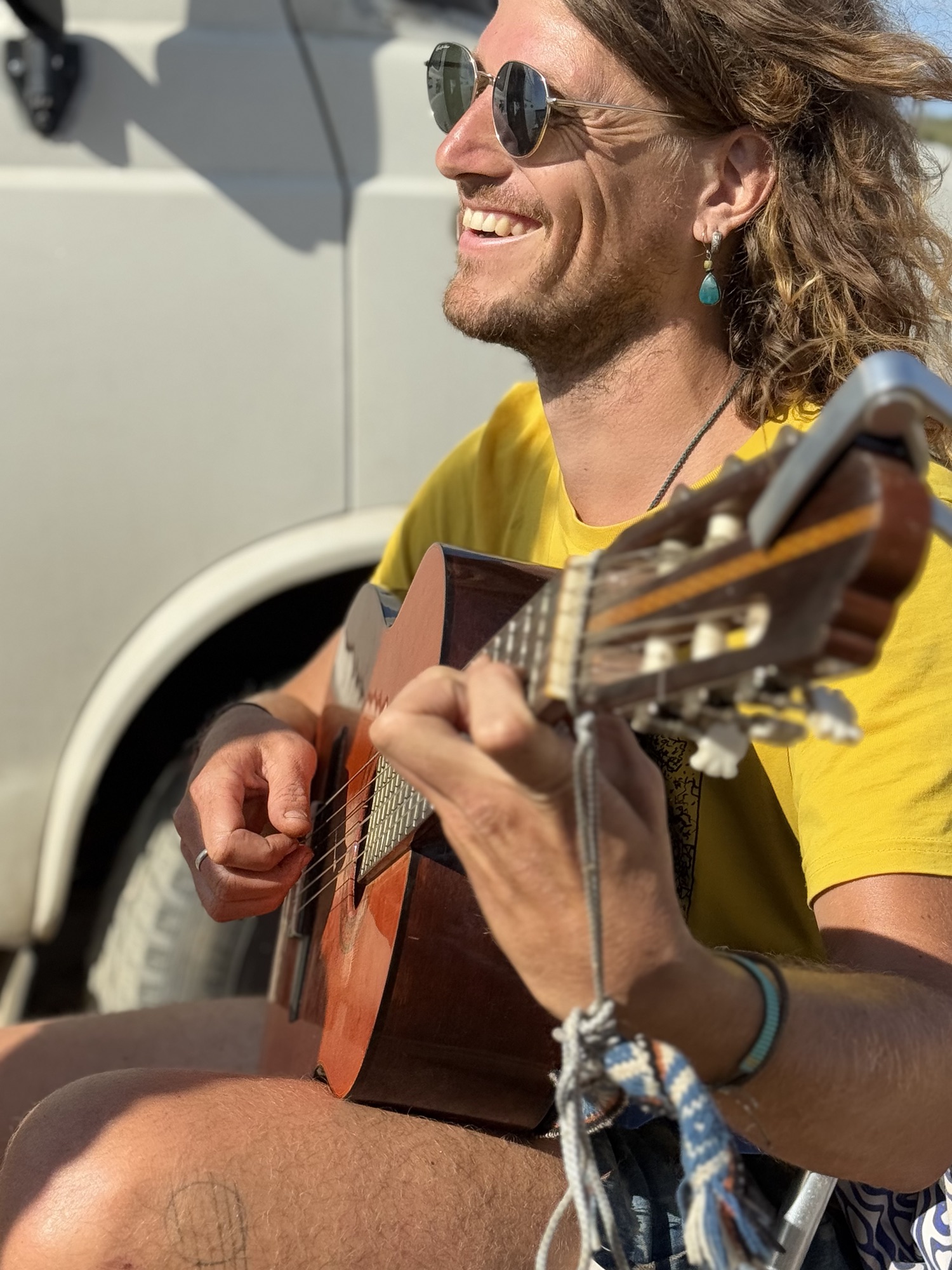 When I finished my study physiotherapy in 2019, I put a mattress in the back of my car and went on the road. I spent a lot of time in France, Spain, Portugal and Switzerland, where I work as a therapist from time to time. (I work to live, I don’t live to work) The different countries, places and communities all inspired me in my creative process. I played a lot on the streets and since the last years I find my way to small festivals and stages more often. In the fall of 2025 I started the recording of my first album ‘Barefoot Driving’. More information and the vlog about this project, you can find on gofundme.